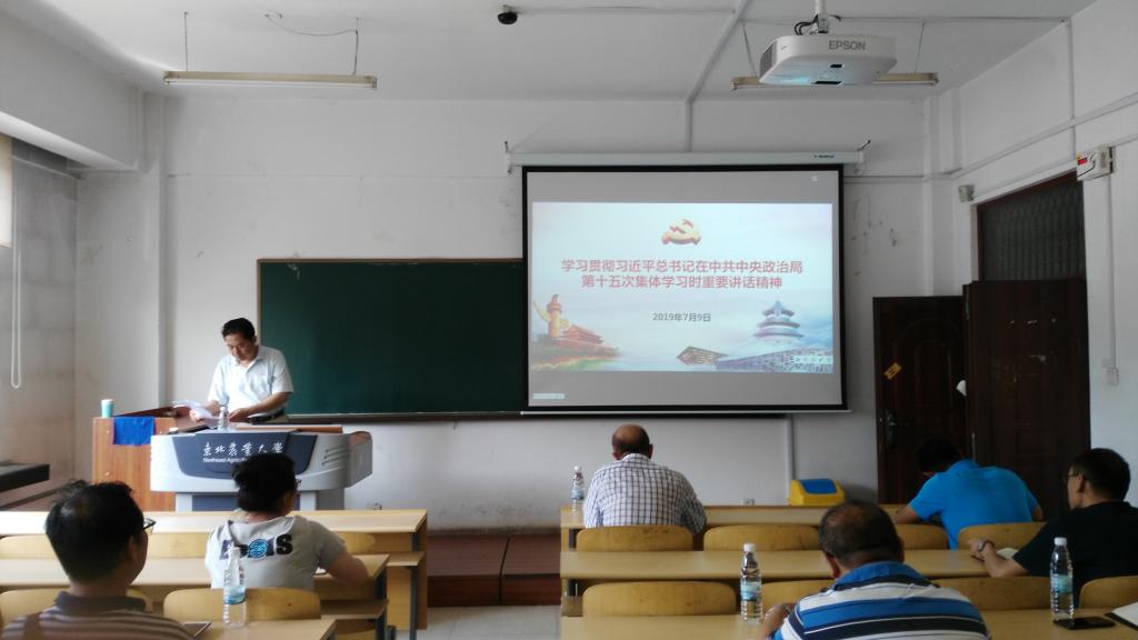首先,孙占海处长传达了7月9日学校党委中心理论学习小组(扩大)会的主要精神。孙占海处长传达了孙登林书记在东北农业大学党委理论中心组(扩大)学习会议上学习传达的关于《学习贯彻习近平总书记在中共中央政治局第十五次集体学习时重要讲话》精神。